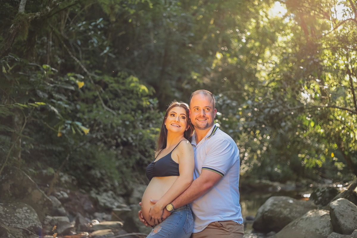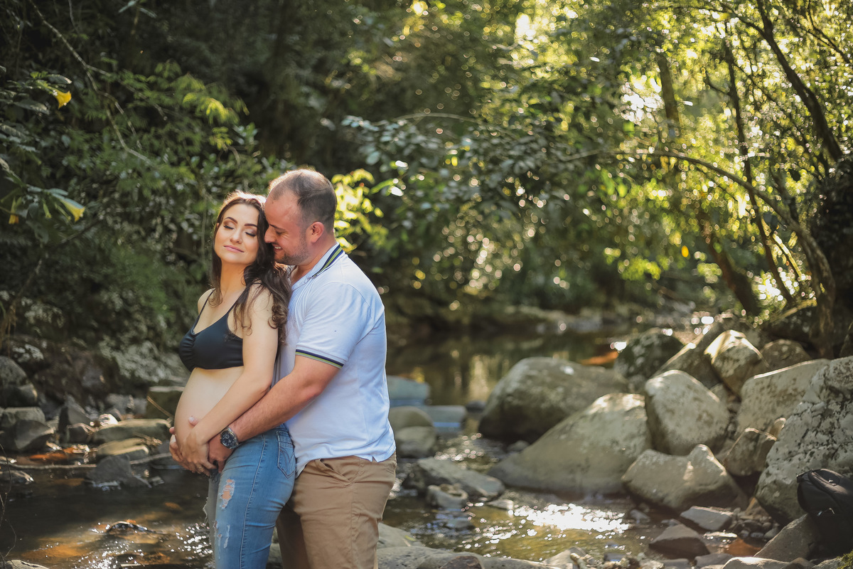 Esse casal querido me procurou para fazer as fotos da gestação da Joana, pensando no que eles imaginavam pra celebrar esse momento da gestação criamos o ensaio primeiramente no estúdio e depois externo com muito verde e cachoeira, como eles queriam!
