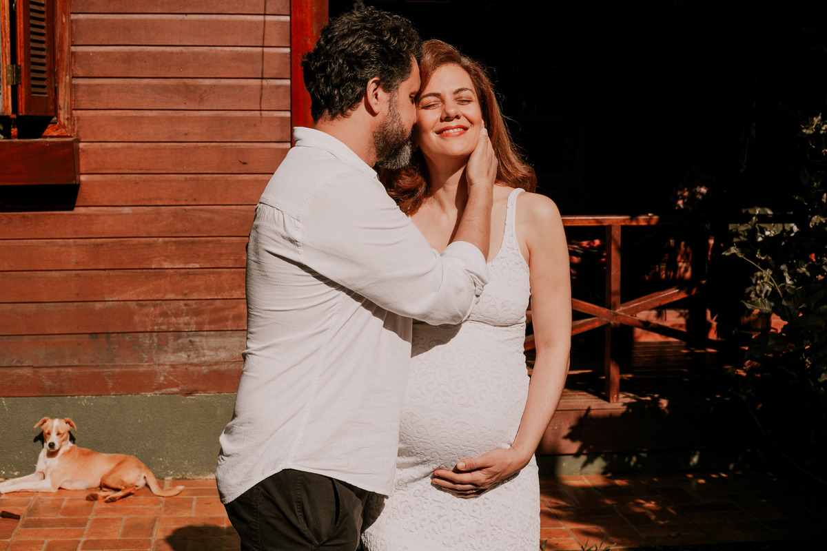 Essa família é especial demais! A Thais e o Sergio escolheram o local que eles casaram para fazer o ensaio de gestante.